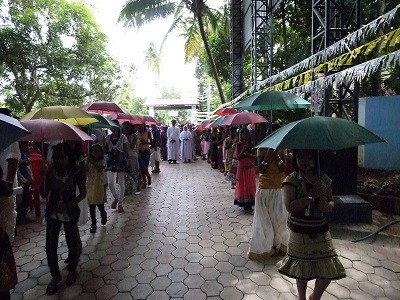 Pfarrer Kochinamkary hat in diesem Jahr wieder eine Rundreise mit 32 Teilnehmern durch das südliche Indien organisiert. Das faszinierende Reiseprogramm führte von der Coromandelküste (Chennai früher Madras) über die Nilgiri Berge mit Tee-, Kaffee- und Gewürzplantagen in das Bundesland Kerala. Dort besuchte die Gruppe am 11. Oktober die Pratheeksha Schule und wurde von den Schülern und Lehrern begeistert und herzlich empfangen. Sehr beeindruckend war der vor einem Jahr gegründete Spielmannszug, der die Gruppe in seinen roten Uniformen mit großem Programm begrüsste.