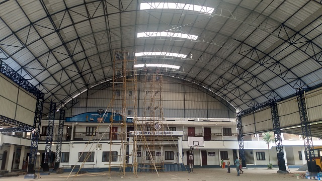 Die Schulhofüberdachung wurde notwendig, damit die Schüler auch bei extremer Sonne und in der heftigen Monsunregenzeit ihre Pausen auf dem Schulhof verbringen sowie dort ihren Sportunterricht abhalten können. Gleichzeitig ersetzt die Überdachung die bisherige Aula der Schule, die demnächst in weitere Klassenzimmer umgestaltet wird.