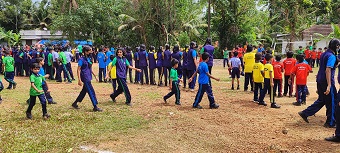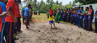 Nach der Wiederaufnahme des regulären Schulbetriebs im Schuljahr 2022 musste der Sportplatz neu hergerichtet werden. Die Fertigstellung wurde mit einem "Sportsday" begangen, der für die ganze Schule ein großes Event darstellte. Es fanden Wettkämpfe in verschiedenen Sportarten (im Bild rechts: Weitsprung) statt. Die Schülerinnen und Schüler wurden dazu in vier Gruppen eingeteilt, die an den unterschiedlichen Farben der Trikots leicht zu erkennen sind.
