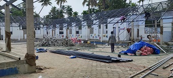 Durch die Überdachung des Schulhofs, die in 2013 gebaut wurde, wurde eine Versammlungsstätte für die zahlreichen Veranstaltungen der Schule geschaffen, die innerhalb des Schulgebäudes keinen Platz gefunden hätte. Nach nunmehr 6 Jahren im feucht-heissen Klima mit salzhaltiger Luft durch die Meeresnähe, wurde ein Anstrich zum Korrosionsschutz der Stahlkonstruktion dringend nötig. Die Arbeiten sind wegen der Höhe der Konstruktion sehr aufwendig und wurden während der Schulferien im April durchgeführt. Der Förderverein Kinderhilfe Chalil e.V. hat diese Sanierung mit Spendengeldern unterstützt.