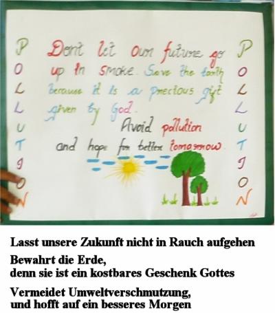 Am 2. Oktober begeht man in Indien einen Gedenktag zum Geburtstag von Mahatma Gandhi. In der Schule wurde dies zum Anlaß genommen für eine Projektwoche, die den Umweltschutz stärker ins Bewusstsein rufen soll. Die Schüler haben in vielfätigen Aktionen z.B. einen Öko-Garten angelegt, das Gelände rund um die Schule gepflegt und von Unrat befreit, und sogar einen kleinen Demonstrationszug organisiert mit Plakaten, die auf die Ziele des Umweltschutzes aufmerksam machen.