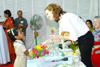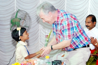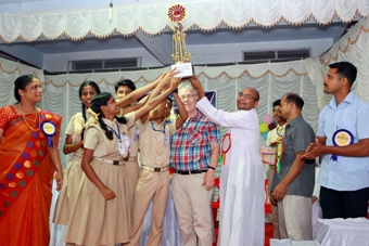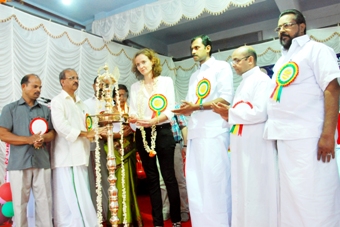 Nach dem obligatorischen Anzünden einer Öllampe begrüßte Pfarrer Isaac Kochinamkary die Gäste, alle Lehrer, die Schüler sowie deren Eltern. Anschließend sprach der Landesminister. Beide Redner betonten die große Bedeutung des Schulprojekts für die ländliche Region um Cherthala, das so vielen Kindern aus armen Verhältnissen zu einer guten Schulbildung verhilft. Große Beachtung fand die Rede von Frau Christ, weil sie die Zuhörer in Malayalam begrüßte. Anschließend sprach sie auf Englisch weiter. So hob sie das Schulprojekt als positives Beispiel für eine erfolgreiche deutsche Unterstützung hervor und lobte die bisherigen Anstrengungen der letzten 20 Jahre. Besonders verwies sie auf das reibungslose Miteinander von Hindu-, Moslem- und Christenkinder. Gerhard Bömelburg überbrachte in seiner Rede herzliche Grüße aus Deutschland und gratulierte zu dem großartigen Erfolg. Er spiegelte noch einmal zurück auf die Anfänge und schilderte den teils mühevollen Weg seit 1995 und die besonderen Verdienste von Isaac Kochinamkary.